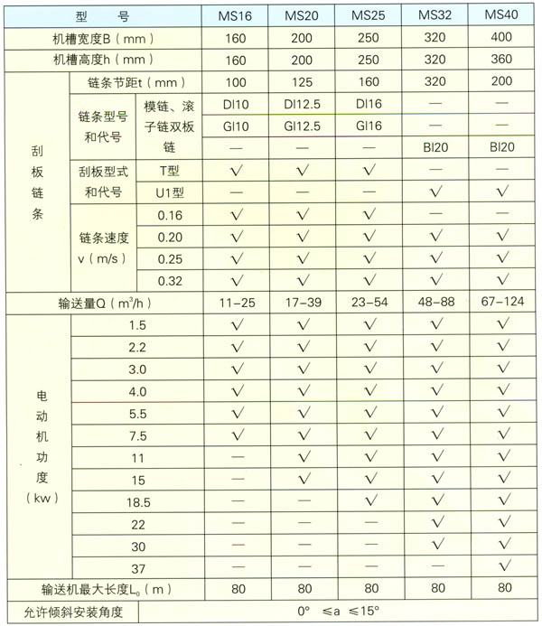 二、MS型刮板輸送機主要參數(shù)